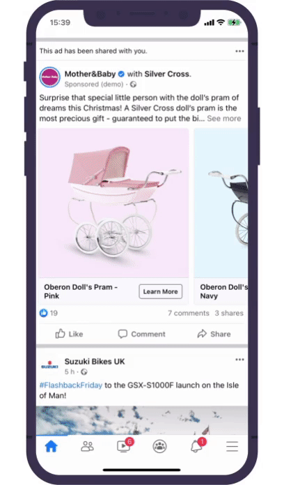 Collections and Carousels allow you the opportunity to advertise multiple products or services in one ad. Each product or service in a Collection or Carousel can link to the relevant page of your website so users don’t have to find the product or service again when they arrive on your site.